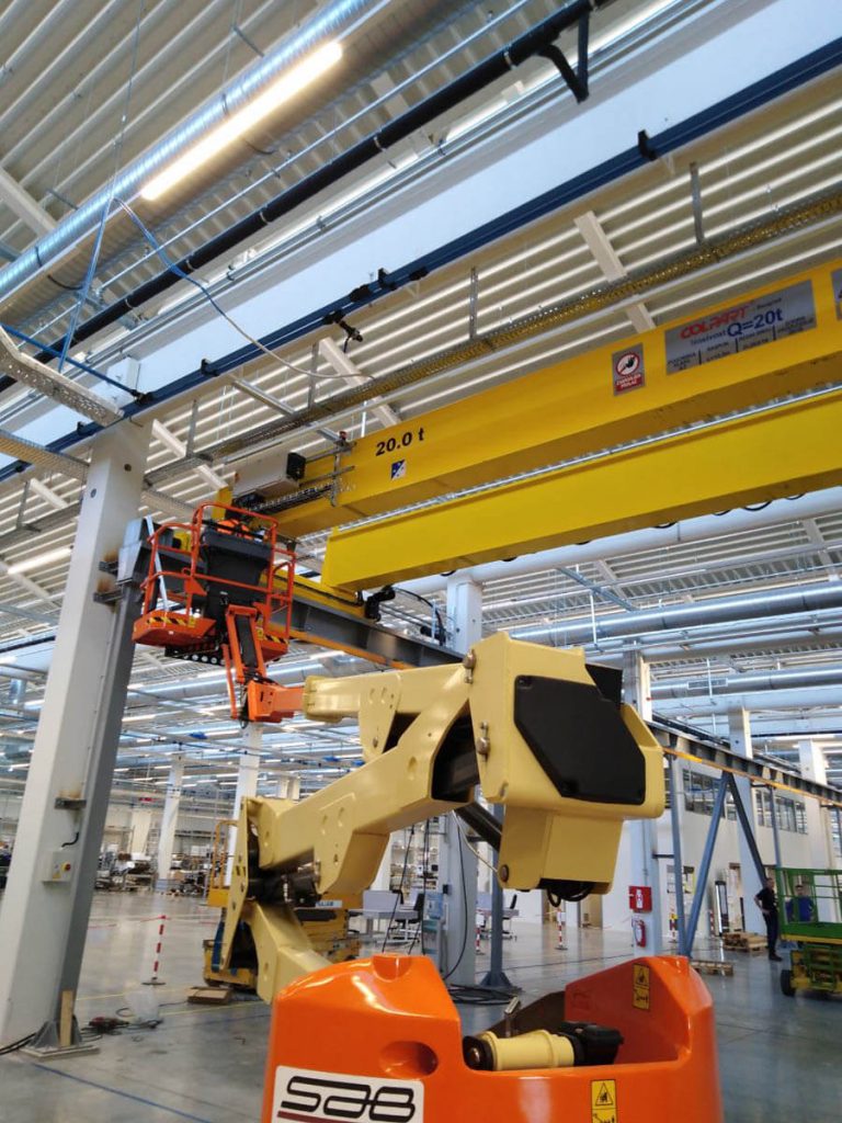 U firmi ZG LIGHTING SRBIJA- Niš podignuta dvogreda mosna dizalica nosivosti Q=20t i raspona L=15m sa kranskom stazom duzine 50 m i izvrsena atestacija dizalice.